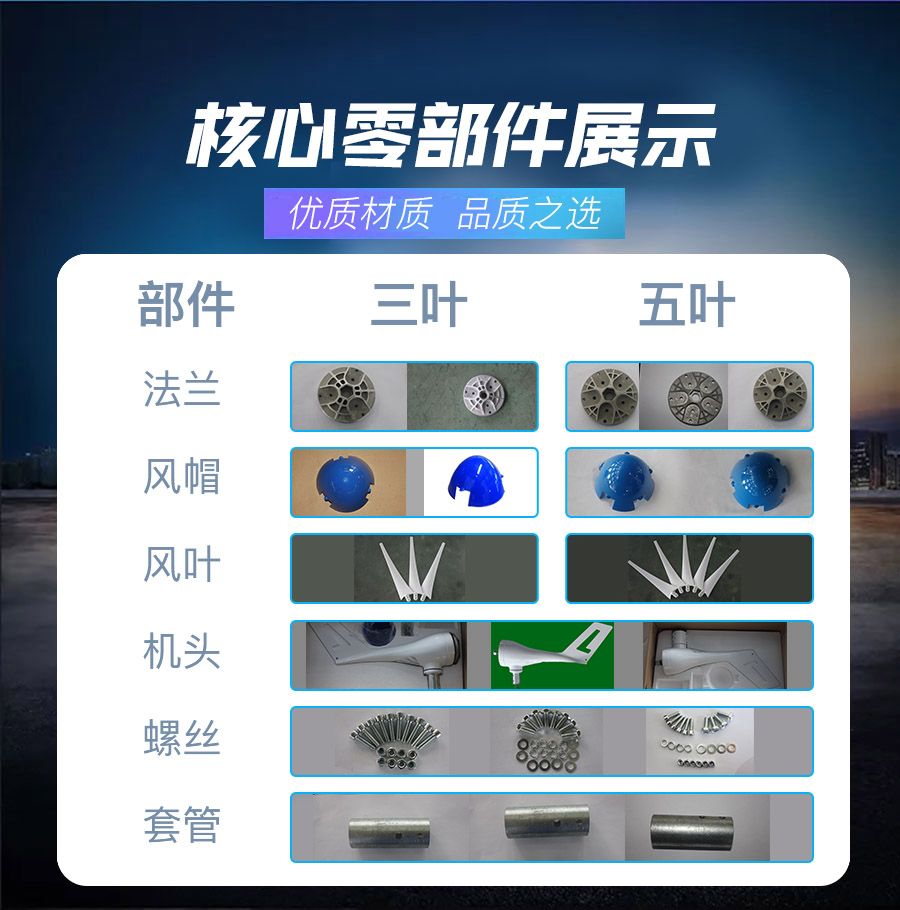 3、風葉采用高強度復合材料,強度高,韌性好,防紫外線,防腐蝕,抗大風,具有良好的氣動性能。