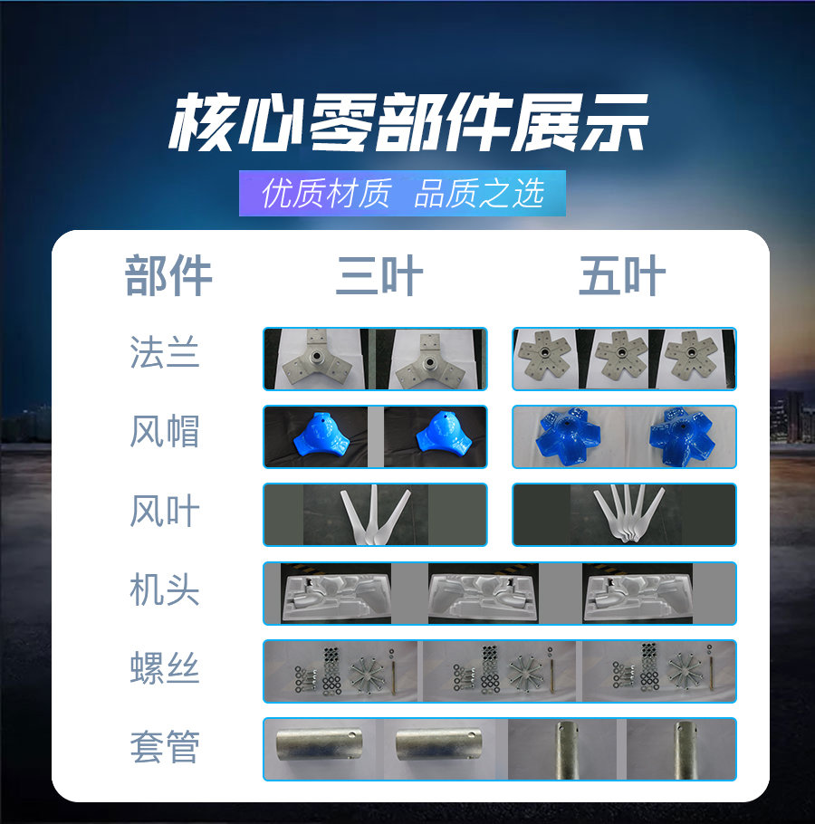 1、風葉采用高強度尼龍復合材料,強度高,韌性好,防紫外線,防腐蝕,抗大風。